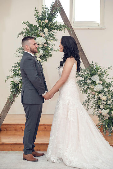 With their doggos at their side, Shannen and Dylan tied the knot in our 100 year old church, in front of the stunning triangle arbor from Feather and Twine Weddings. Their heartfelt vows were overseen by Danielle from Weddings by Danielle Emily who has known the bride for many years and that personal connection made the ceremony that even more special.